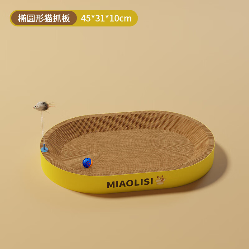 喵丽丝椭圆形猫抓板窝耐磨不掉屑猫窝一体特大号猫爪板猫咪用品 柠檬黄|椭圆中号 逗猫棒 猫铃铛