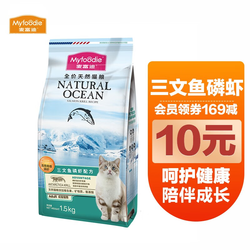 麦富迪麦富迪成猫粮三文鱼油配方英短美短高营养猫咪通用天然粮 三文鱼 磷虾天然成猫粮 10kg