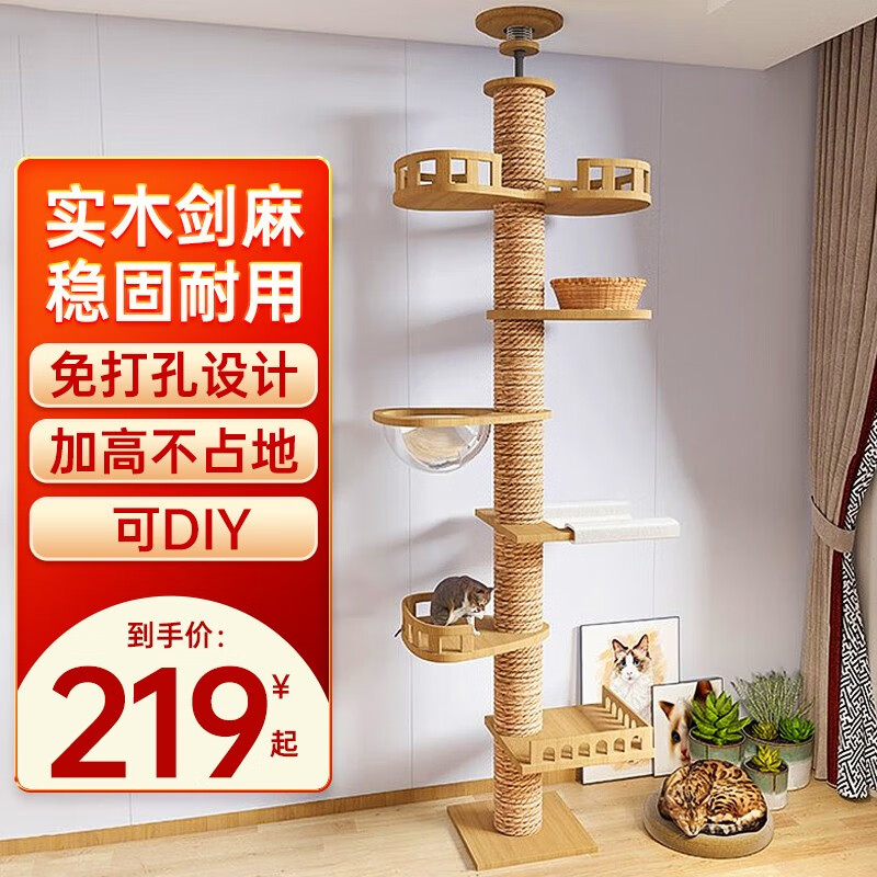 阙思芊大型猫爬架通天柱木质猫架子猫窝一体实木猫架太空舱猫玩 实木3跳台(见图二)