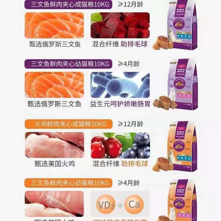 麦富迪猫粮10kg成幼鱼肉夹心营养增肥发腮蓝猫流浪猫通用型20斤装