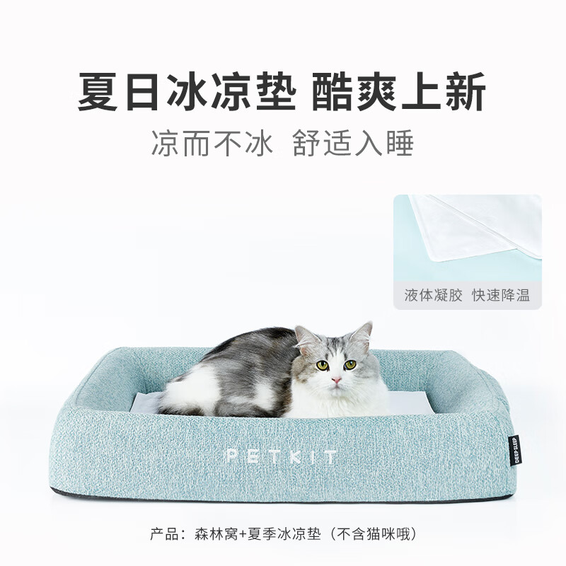 小佩森林深睡窝 夏天四季通用记忆棉拆洗狗窝猫窝宠物凉席冰垫床 解暑套装-松林绿 专用凉垫 S码-51*39*10.5cm(10斤内宠物)