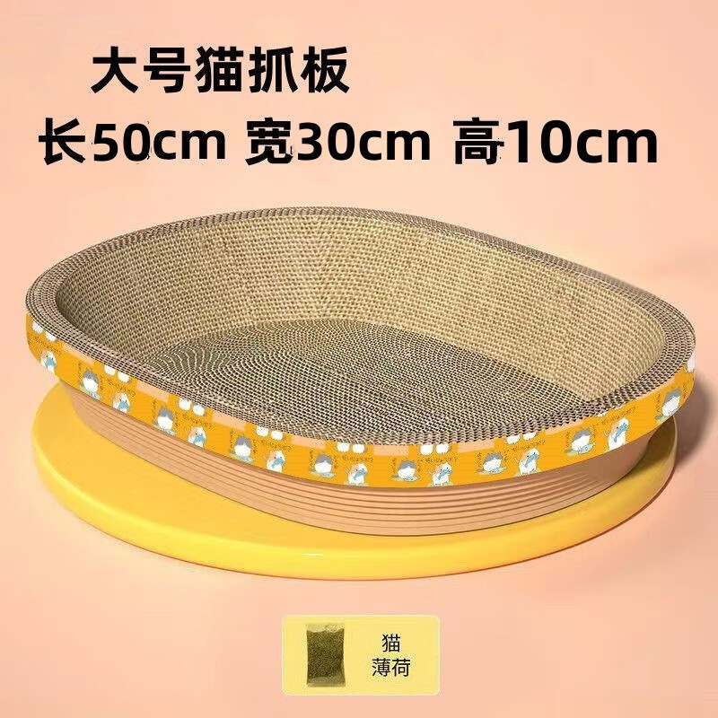 派优比猫抓板猫爪板猫窝瓦楞纸猫抓不掉屑猫玩具猫用品 大号椭圆型猫抓板50*30*10(实用款)