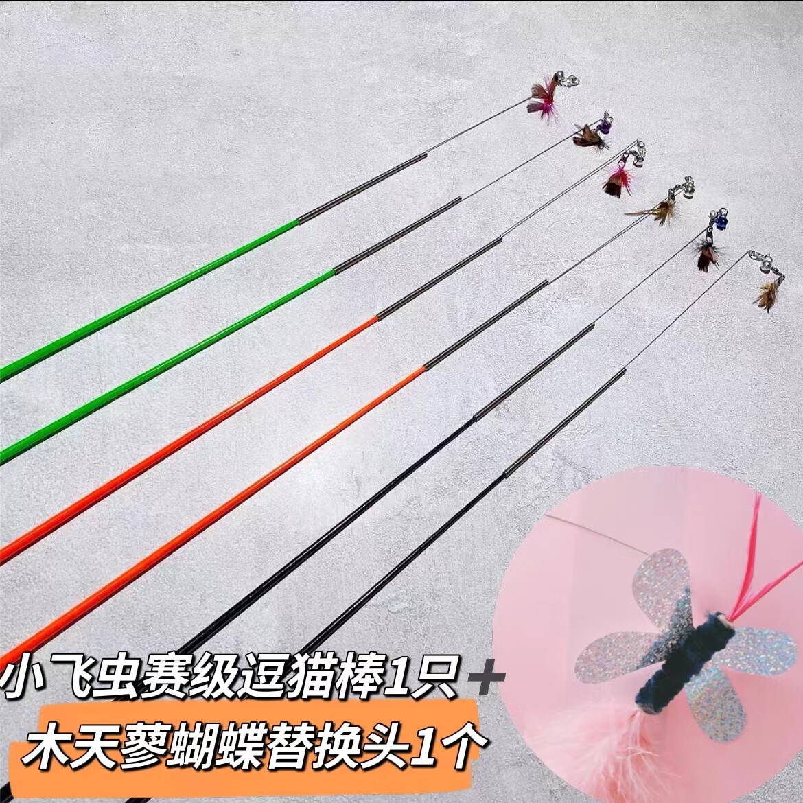 CFA逗猫棒赛级猫咪自嗨羽毛带铃铛玩具可替换头实木柄幼猫耐咬 赛级小飞虫逗猫棒 木天蓼蝴蝶