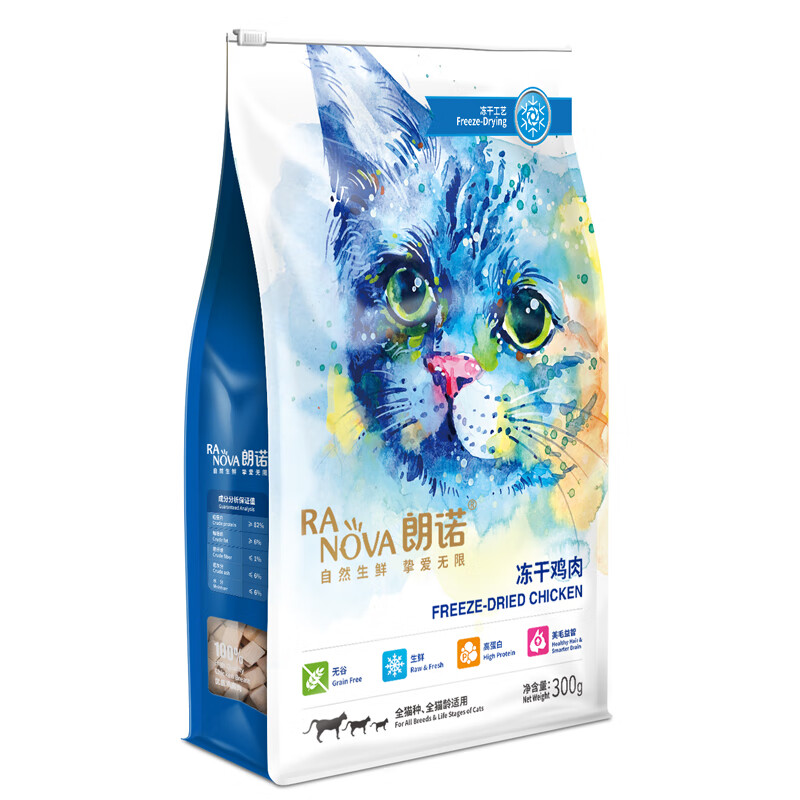 朗诺 冻干鸡肉猫咪零食成幼猫粮高蛋白免疫宠物食品 猫冻干鸡肉300g 1号会员店