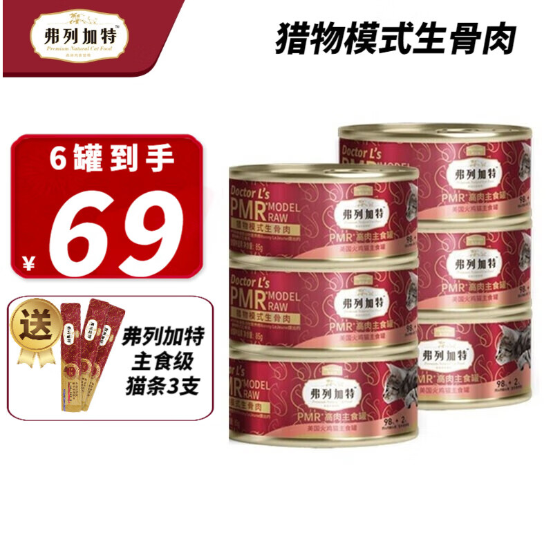 弗列加特猫罐头98%高含肉量高肉主食罐成幼猫罐头 美国火鸡95g*6罐