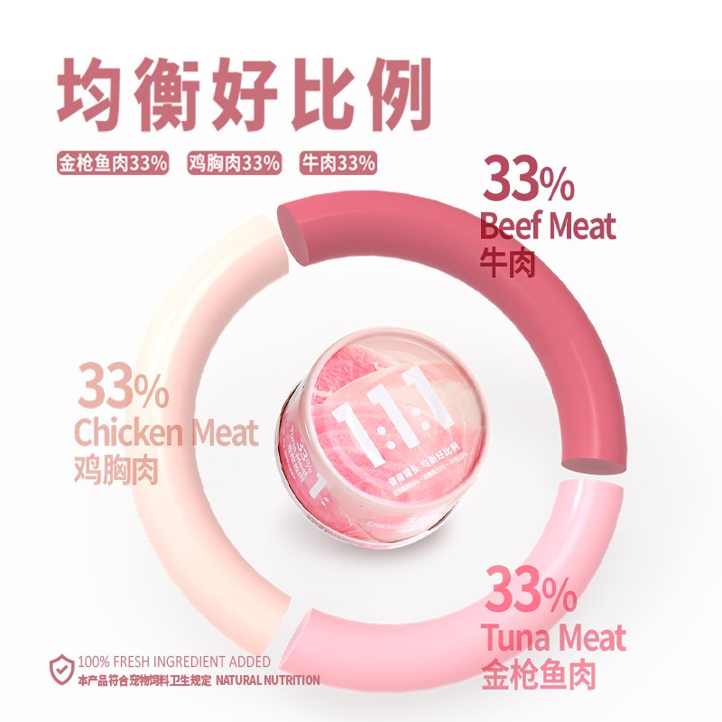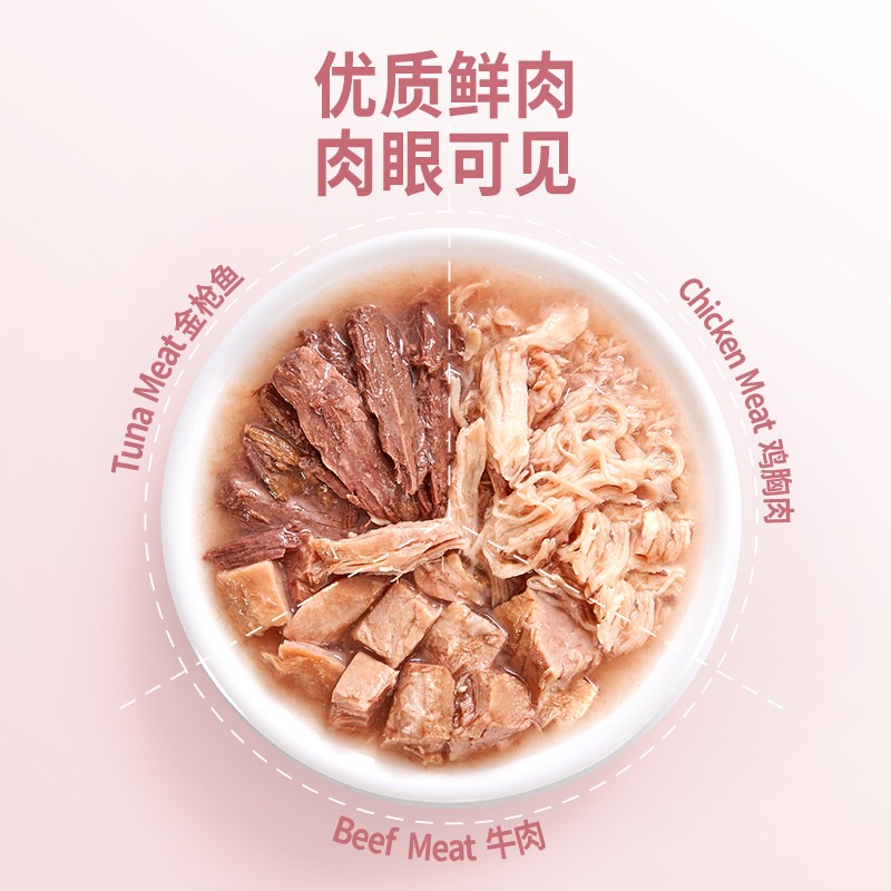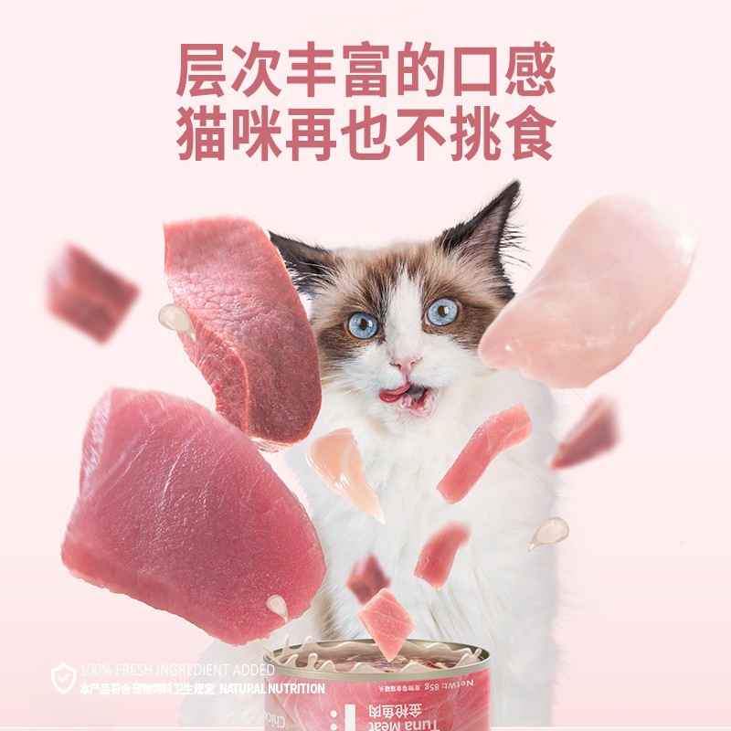 喵彩七日罐金枪鱼猫罐头猫主食罐喵条奶汤罐补充营养零食罐头增肥 三角罐金枪鱼鸡肉牛肉/85g*6罐