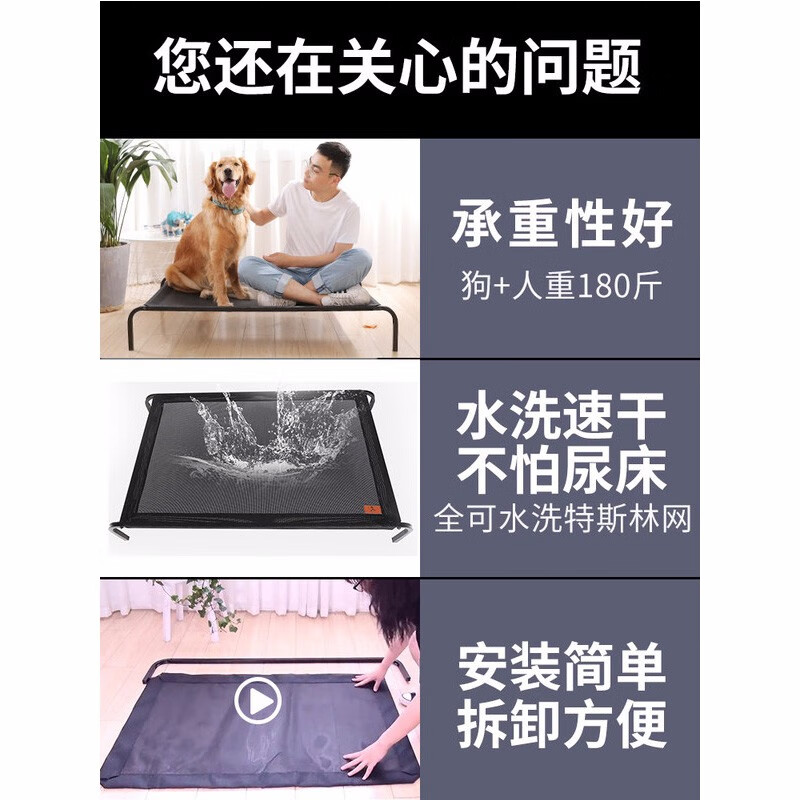 华元宠具狗狗行军床狗窝狗折叠行军床离地不锈钢大型犬中型犬宠物垫子金毛柯基犬睡觉狗狗耐咬防潮沙发床 宠物铁架床(铁架 网面) M-(网面尺寸:77*60*15cm)