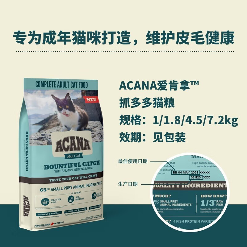 原始猎食渴望(ORIJEN)进口猫粮鱼肉鸡肉全价成猫幼猫通用猫咪主粮六种鱼原装进口 爱肯拿抓多多猫粮1.8kg-至23/7/1