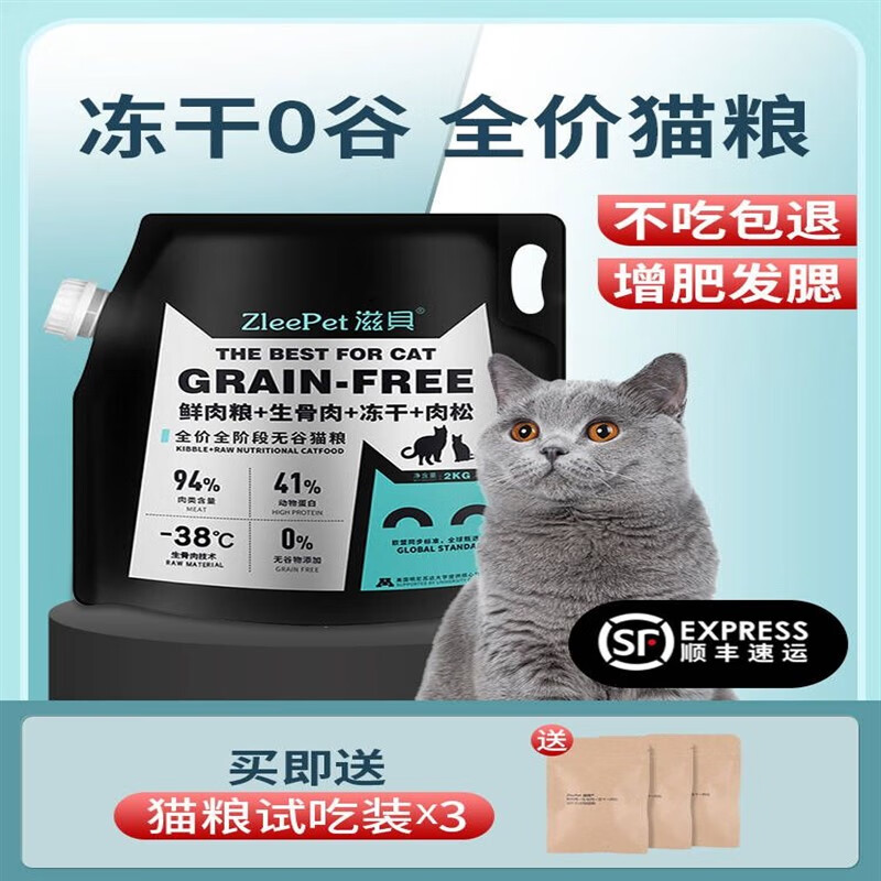 冻干鲜肉猫粮4斤成猫幼猫增肥发腮通型1斤用营养全阶段。