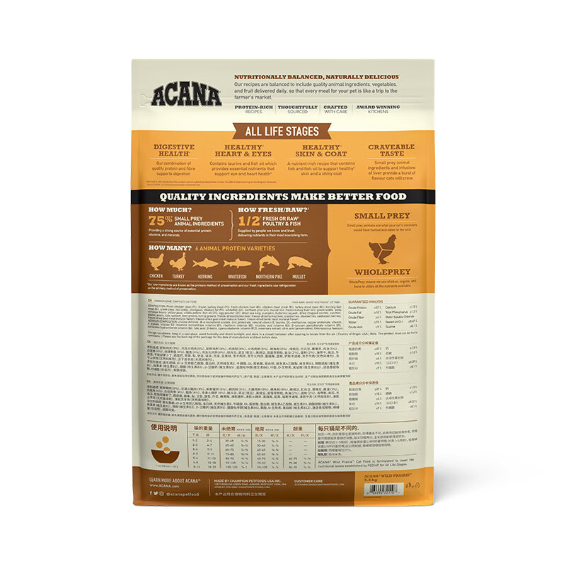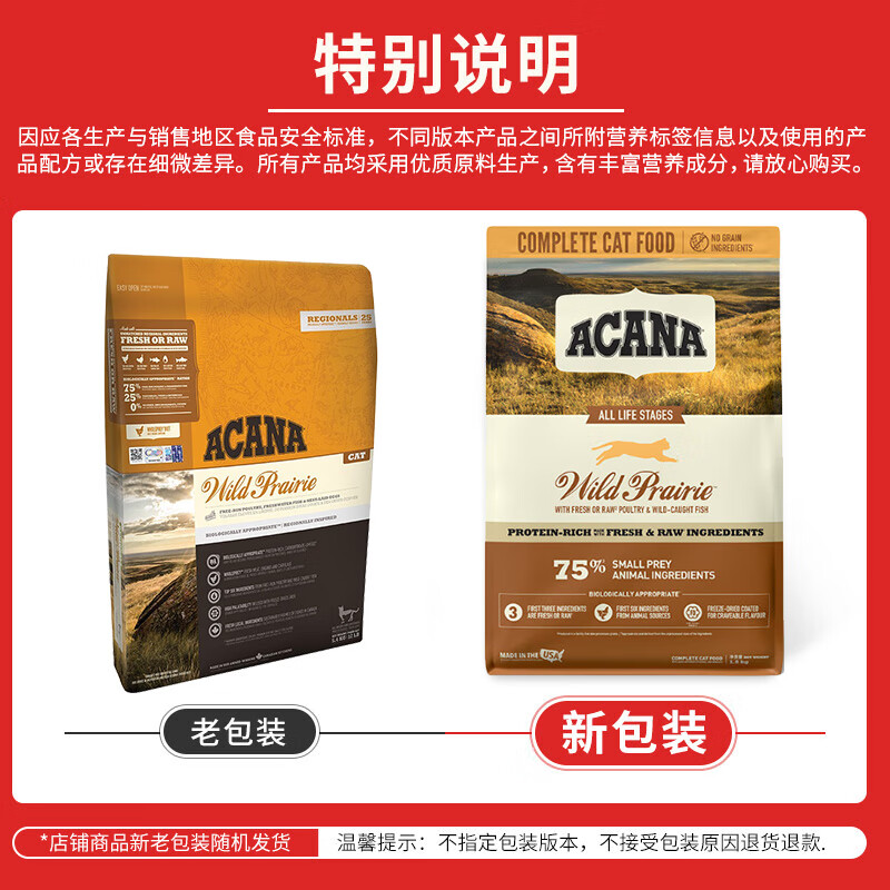 爱肯拿(Acana)牧场盛宴鸡肉味天然无谷猫粮5.4kg【加版配方美产】(新老包装随机发货)
