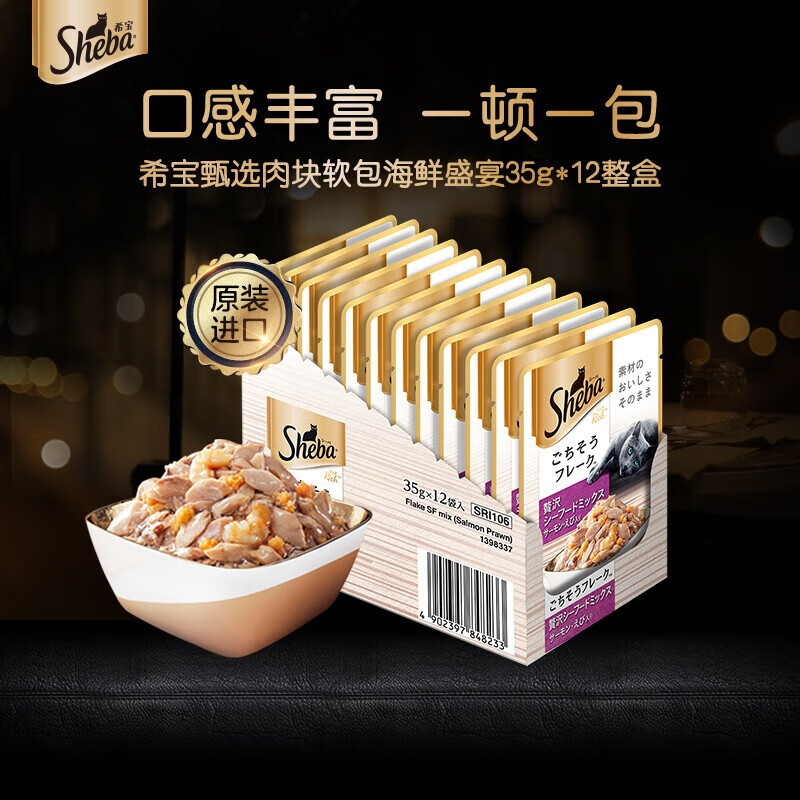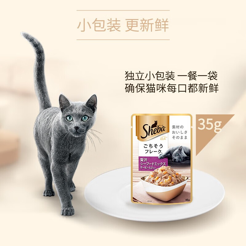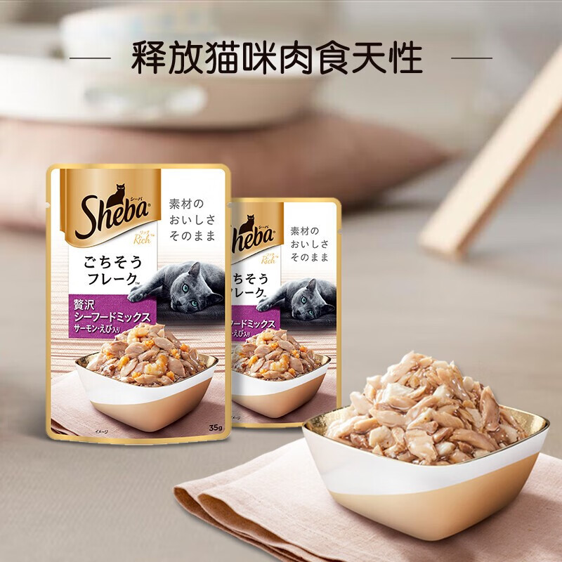希宝(Sheba)原装进口猫粮肉块软包海鲜盛宴成猫35g*12整盒装白金妙鲜包 【12包】吞拿鱼明虾海鲜盛宴