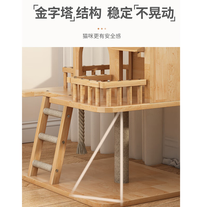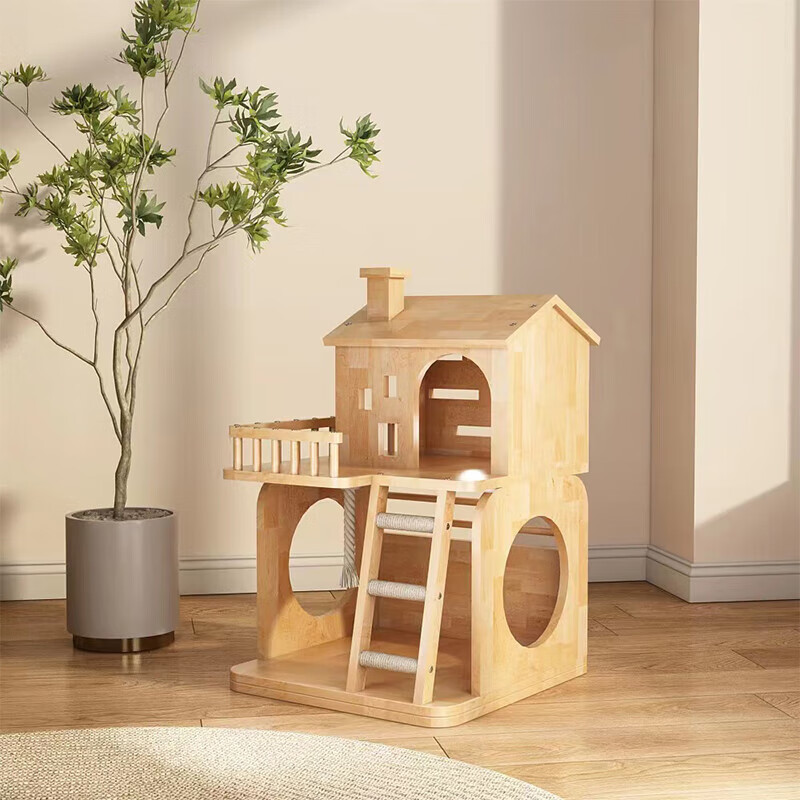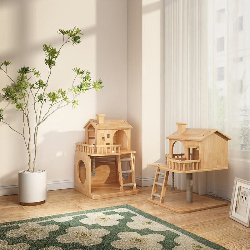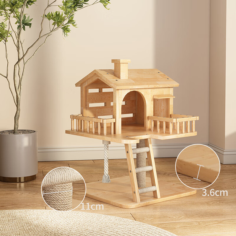 实木猫爬架窝躲避屋木质猫树一体不占空间磨爪子柱跳台小户型 猫洞屋18mm橡胶木爬架 顺丰