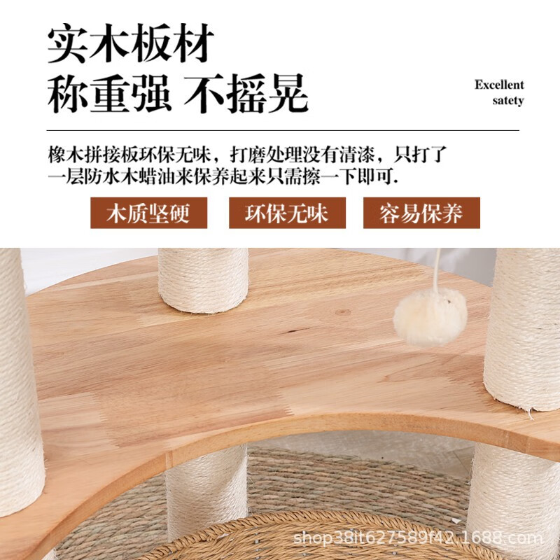 实木猫爬架猫窝猫树一体立式猫架子剑麻立式编筐木质猫咪用品玩具 实木款90755