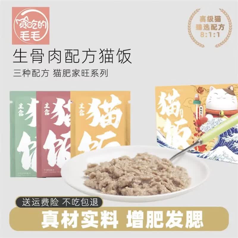 新宠之康鲜肉熟猫饭鸡肉三文鱼牛肉自制主食湿粮生骨肉猫粮成幼猫全阶段 三文鱼100g一袋 2100g