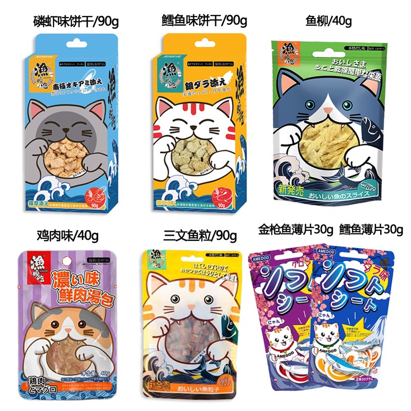 渔晓吃大礼包 小鱼干猫薄荷饼干喵餐包宠物猫咪零食三文鱼粒成猫幼猫零食 三文鱼粒 小鯷鱼干 明太鱼柳(各1包)