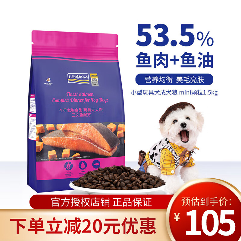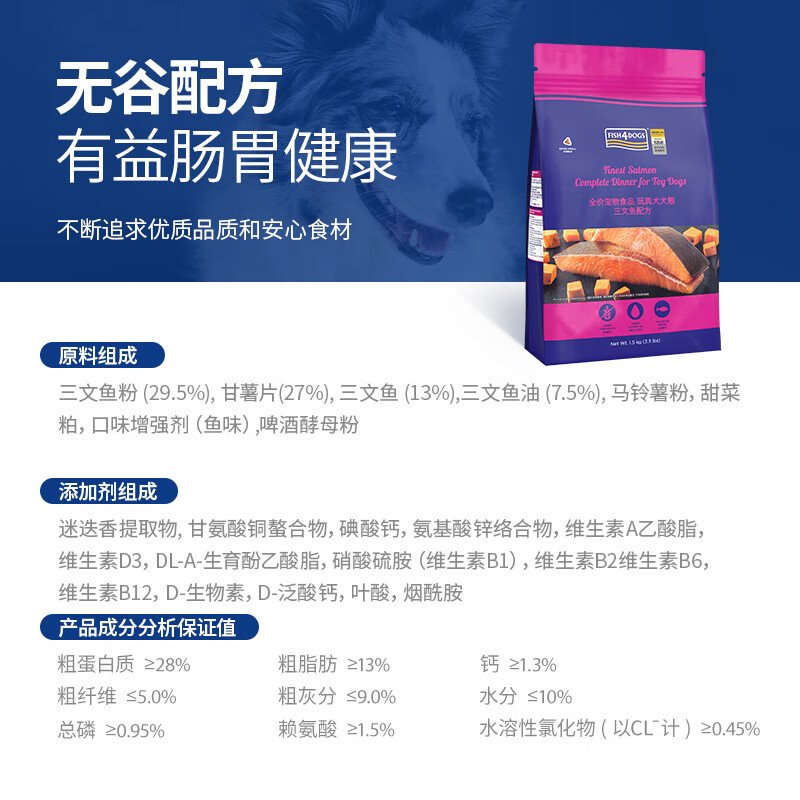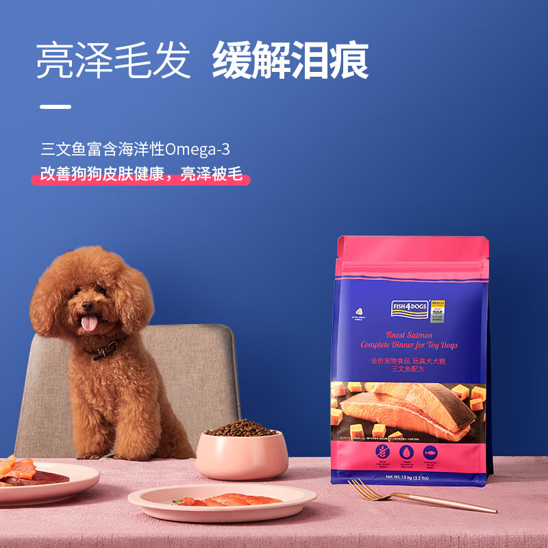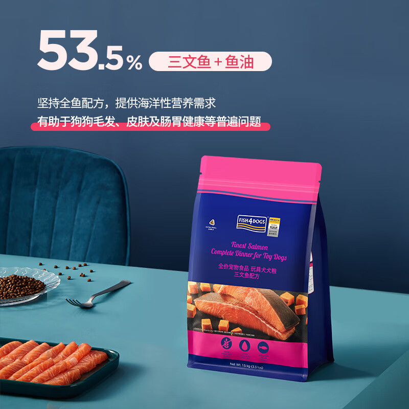 海洋之星(fish4dogs)狗粮无谷天然全期三文鱼配方泰迪贵宾比熊柯基小型成犬幼犬通用型 玩具犬1.5KG(小颗粒)