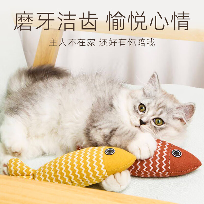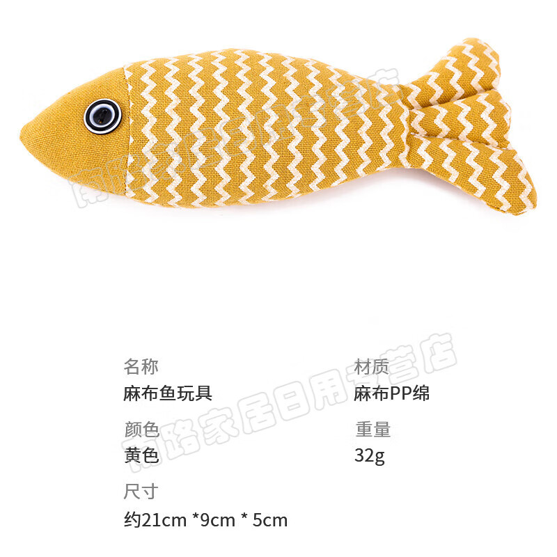 猫玩具自嗨解闷猫薄荷仿真鱼猫咪幼猫逗猫棒小猫磨牙宠物猫猫用品 [内含猫薄荷.]22c/m黄色麻布鱼