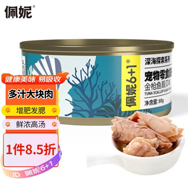 佩妮6 1 深海系列猫咪罐头营养护肠胃猫零食成猫宠物湿粮营养罐头猫罐头 金枪鱼 扇贝 80g*5罐 混合口味