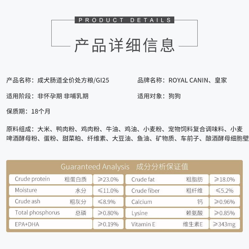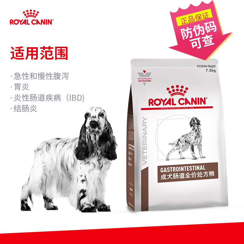 皇家GI25犬肠道处方粮幼犬消化不良胃肠炎结肠炎厌食急慢性腹泻狗粮 GI25成犬肠道全价处方粮7.5kg