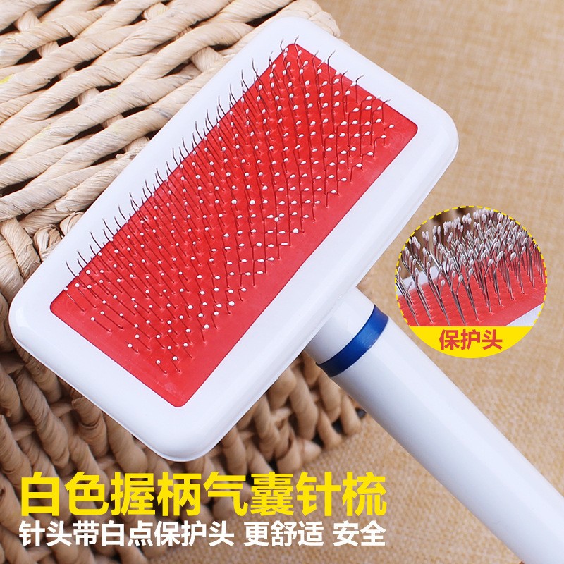 亲卫狗梳子猫梳子猫毛清理器猫刷子白色握柄气囊针梳针头除蚤脱毛刷金毛泰迪中大型犬宠物美容刷毛器狗毛梳