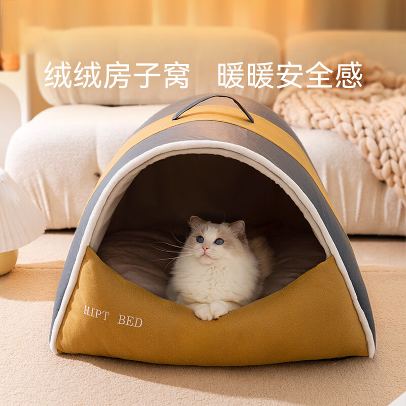 嬉皮狗(hipidog)秋冬季狗狗撞色弧形蒙古包狗窝小型犬猫咪冬天宠物窝保暖猫窝用品 绿色 S(建议体重10斤内)