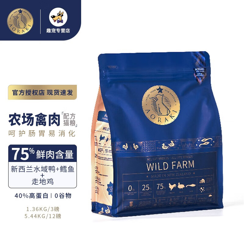 云顶星aoraki库克山系顶自然呵护白包列星新西兰进口猫粮无谷全价增肥发腮红肉禽肉海洋鱼配方牧场禽肉 农场禽肉12磅(5.44kg)
