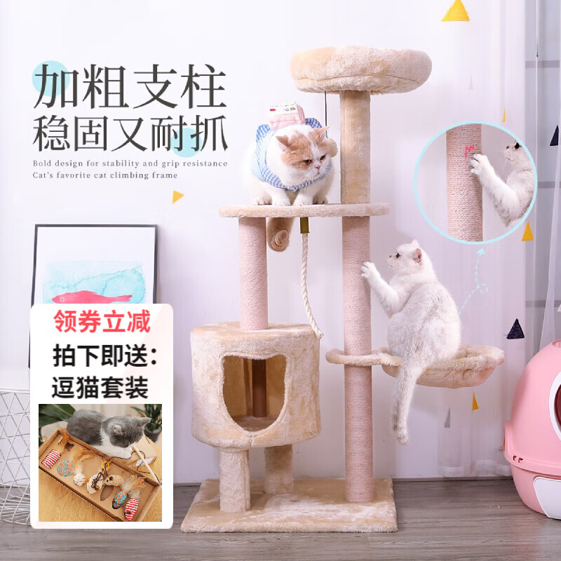 Hoopet 猫爬架小型猫架子猫窝一体剑麻猫抓板耐磨猫抓柱猫玩具猫跳台猫树 3猫窝 吊球 吊绳 趣味猫爬架