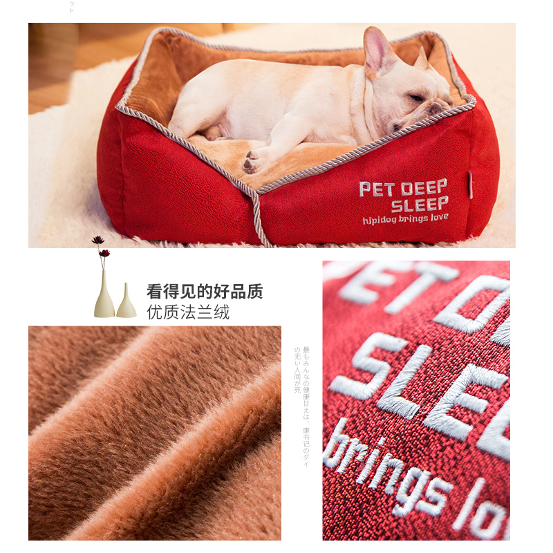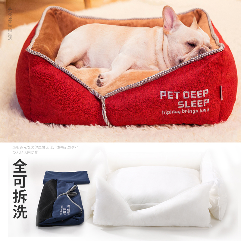 嬉皮狗狗窝四季通用可拆洗泰迪法斗狗床小型大型犬冬季保暖猫窝宠物用品 摩卡棕 M【建议20斤内宠物】
