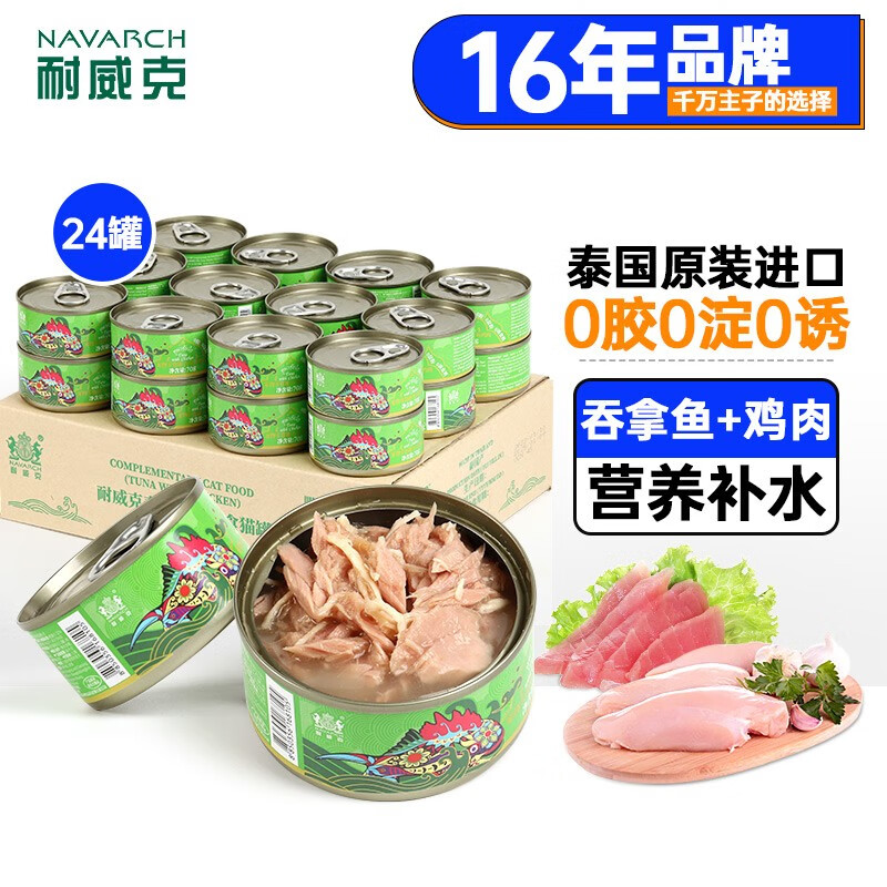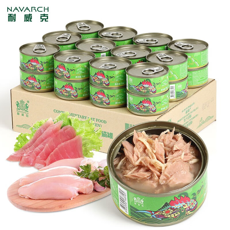 泰国进口 耐威克猫罐头70g*24罐补充营养增肥成幼猫咪湿粮罐头整箱 【泰国原装进口】吞拿鱼 鸡肉70g*24罐