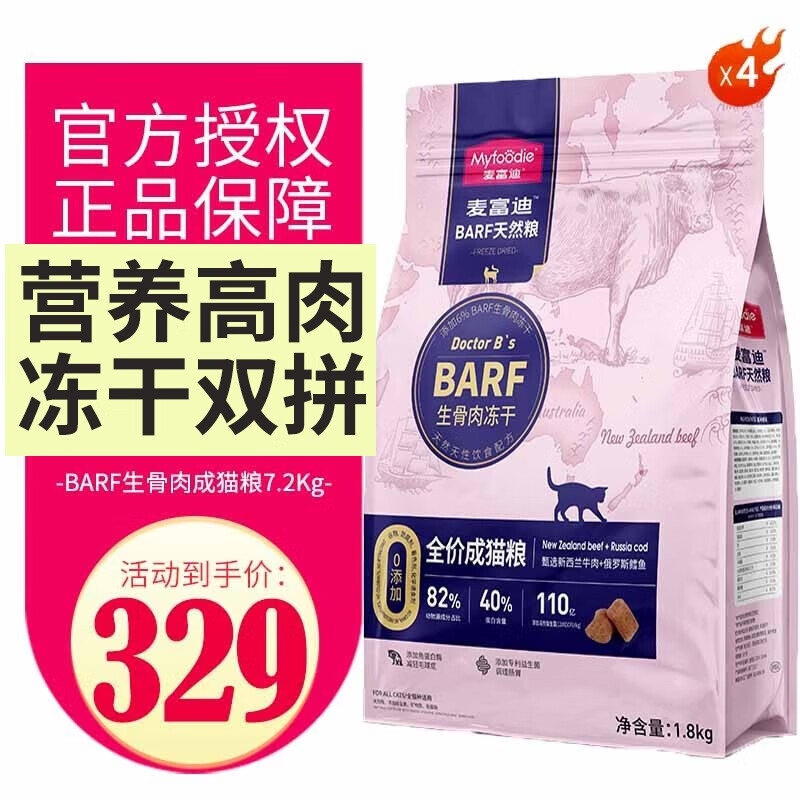 麦富迪(Myfoodie)barf 猫粮生骨肉冻干双拼粮鲜肉无谷营养通用粮 牛肉鳕鱼成猫7.2kg