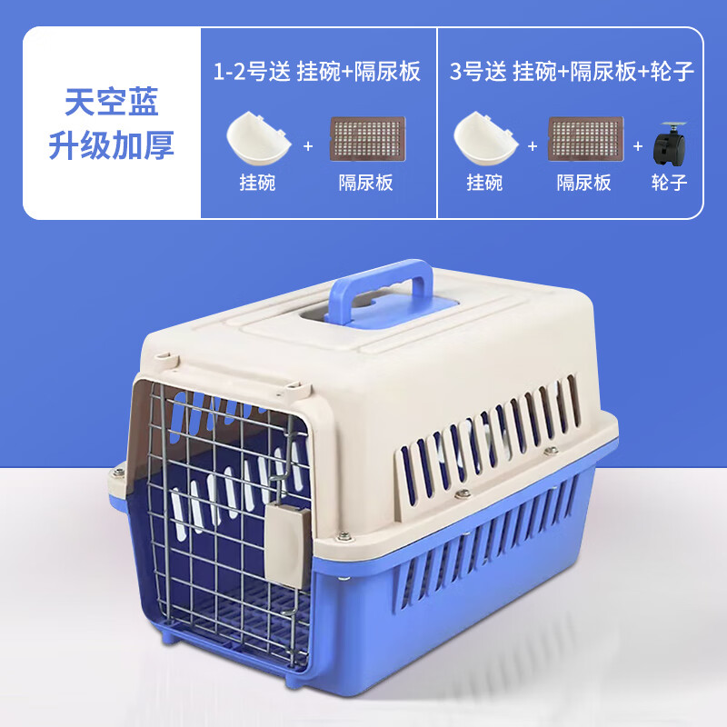 兰叙猫咪航空箱宠物狗狗外出便携式猫笼子小型犬航空专用托运车载狗笼 天空蓝 送挂碗 隔尿板 1号箱【12斤内猫狗】