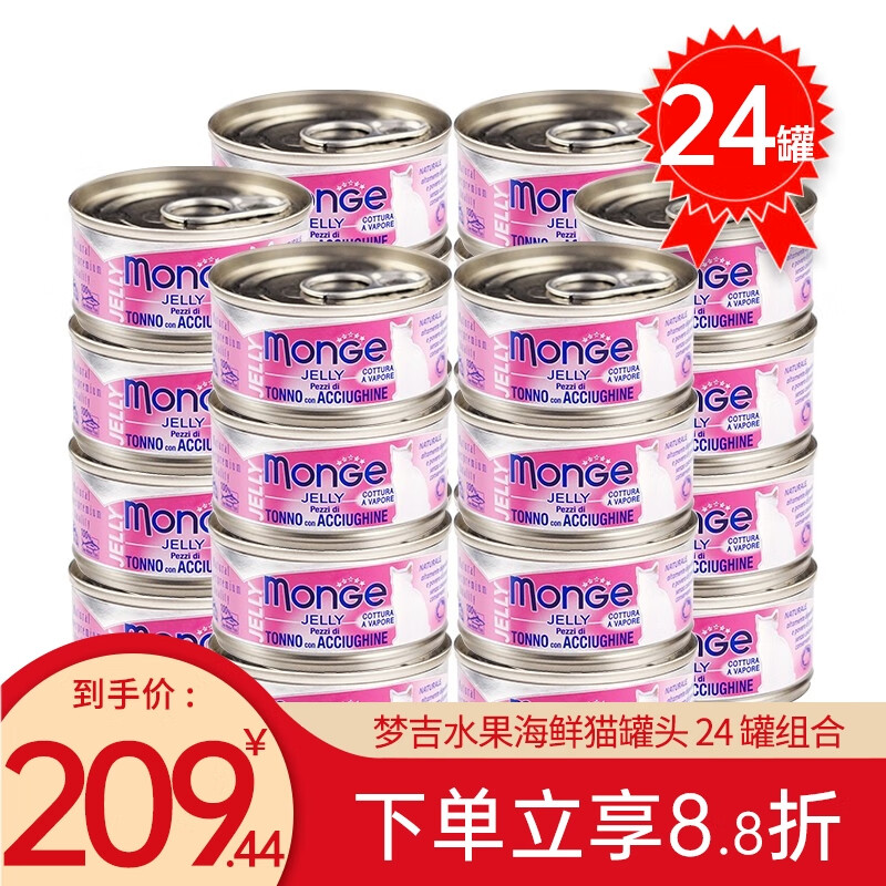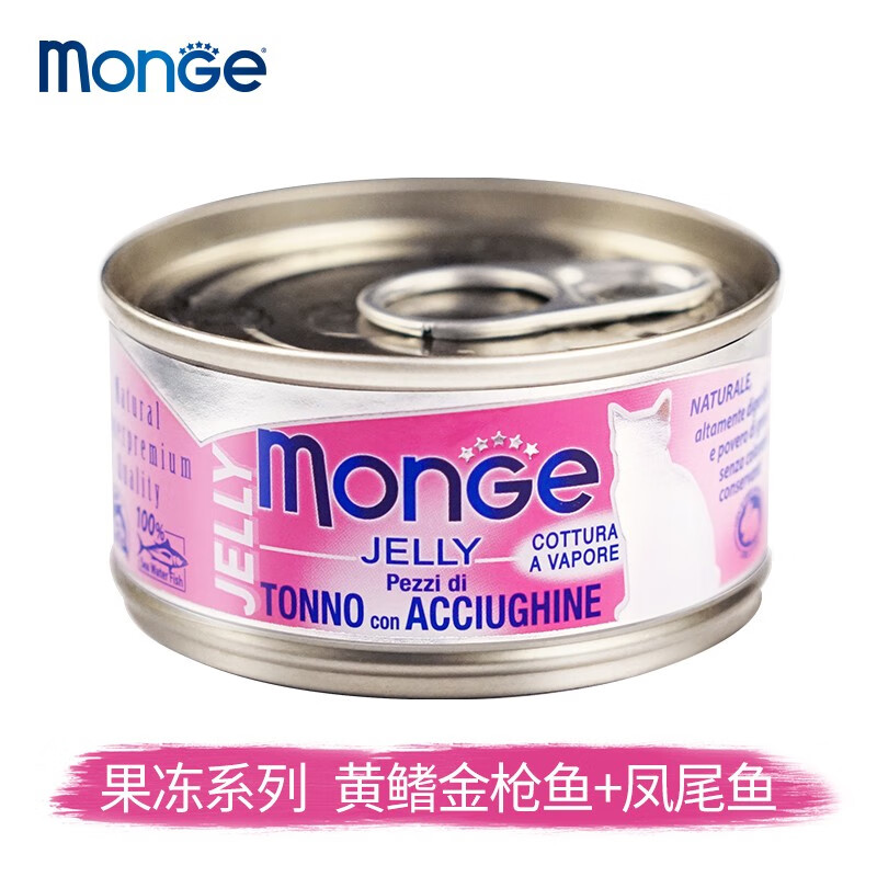 MONGE意大利梦猫罐头吉天然果冻水果金枪鱼成幼猫老年猫湿粮零食 24罐 果冻 黄鳍金枪鱼 凤尾鱼