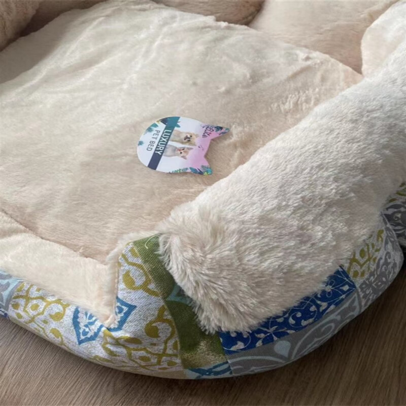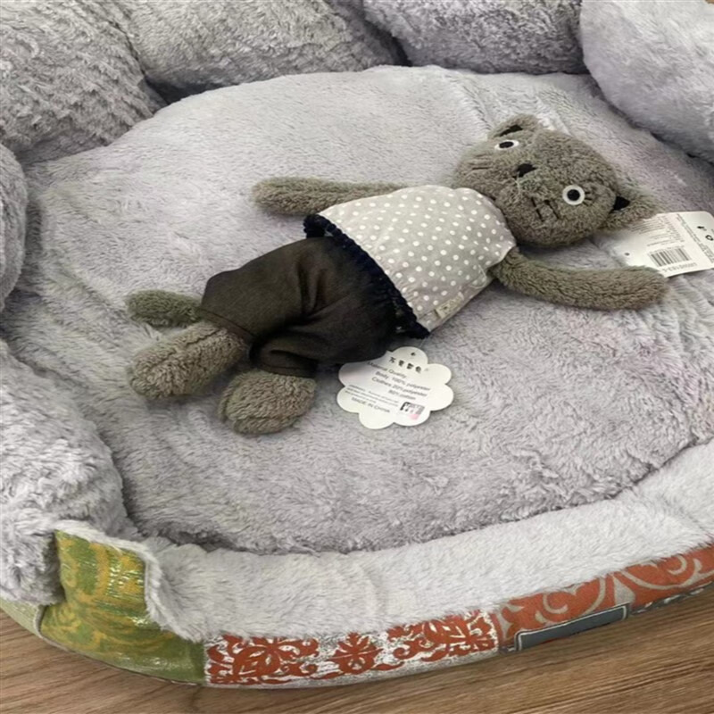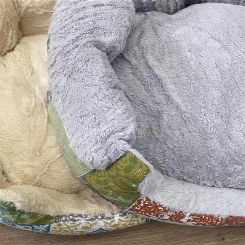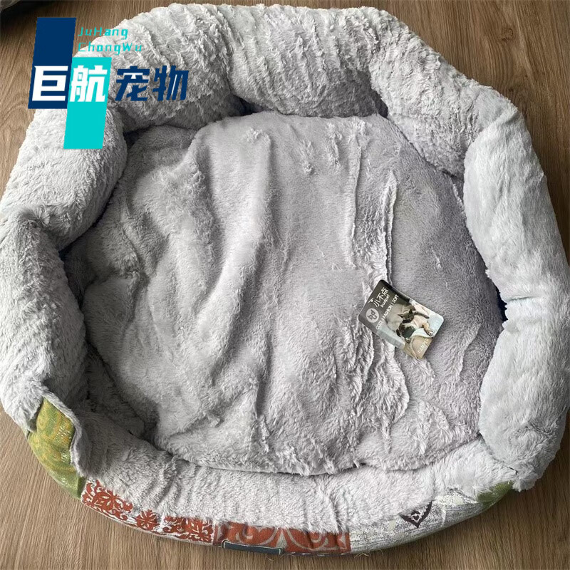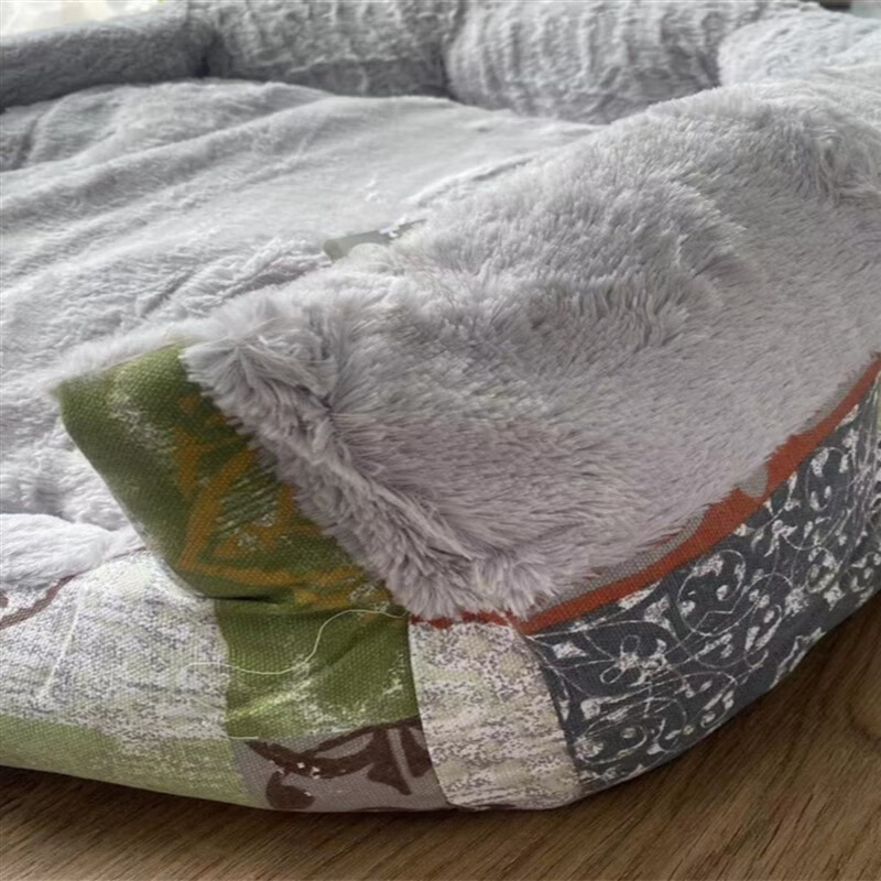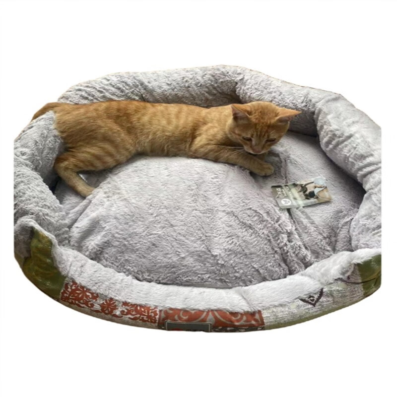 凛东出口单 秋冬法兰绒保暖狗窝猫舍 可拆洗 四季通用 大号宠物窝睡觉 红格加灰绒猫狗通用窝 大号60*7