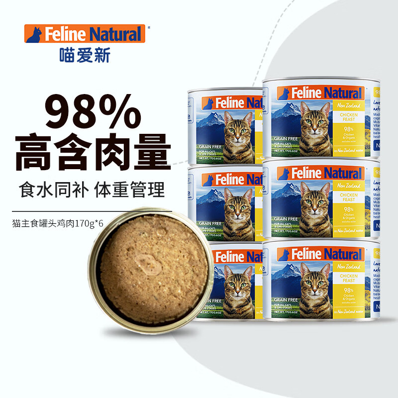 【自营时效】Feline Natural k9主食猫罐头 新西兰原装进口成猫幼猫通用猫咪湿粮 鸡肉170g*6