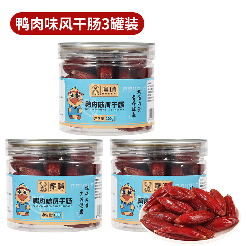 摩啃狗狗零食鸭肉风干肠营养解馋风干鸭肉干训犬奖励幼犬小型犬软肠 3罐(适量装95%客户选择)