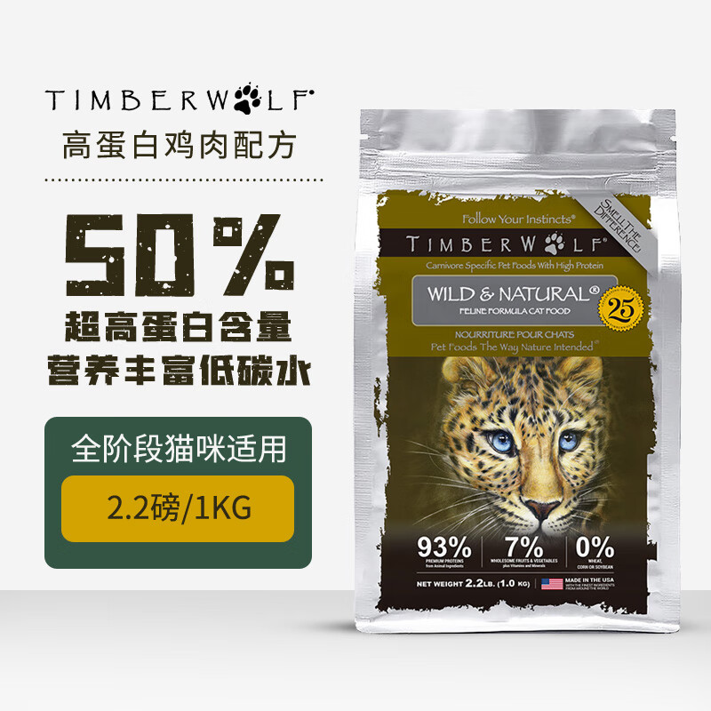 Timberwolf草本魔力高蛋白鸡肉无谷成猫幼猫粮通用全猫粮2.2磅/1kg