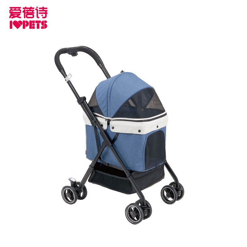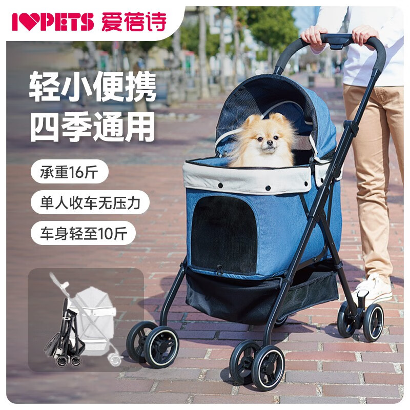 爱蓓诗 IVPETS 宠物推车小型犬狗狗推车猫推车外出双层手推车轻便推车 蓝色 长47*宽80*高98.5cm