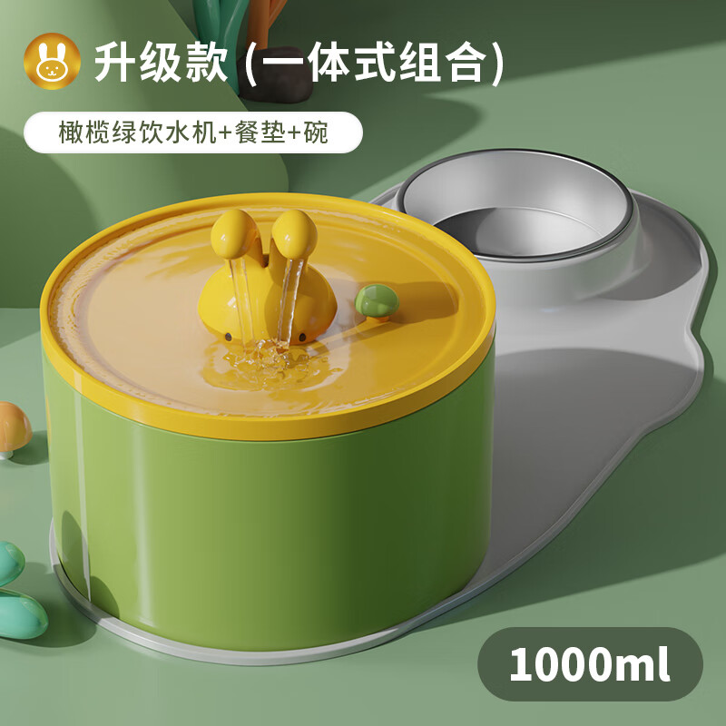 猫咪陶瓷饮水机自动循环流动喝水不湿嘴宠物饮水器狗狗水盆猫用品 兔子款-橄榄绿饮水机1L 餐垫 碗