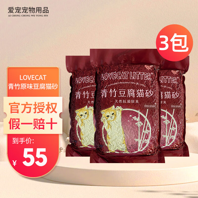 爱宠爱猫猫砂 love cat猫砂豆腐猫砂原味绿茶植物猫砂除臭易结团可冲马桶 原味青竹豆腐猫砂 5斤*3包