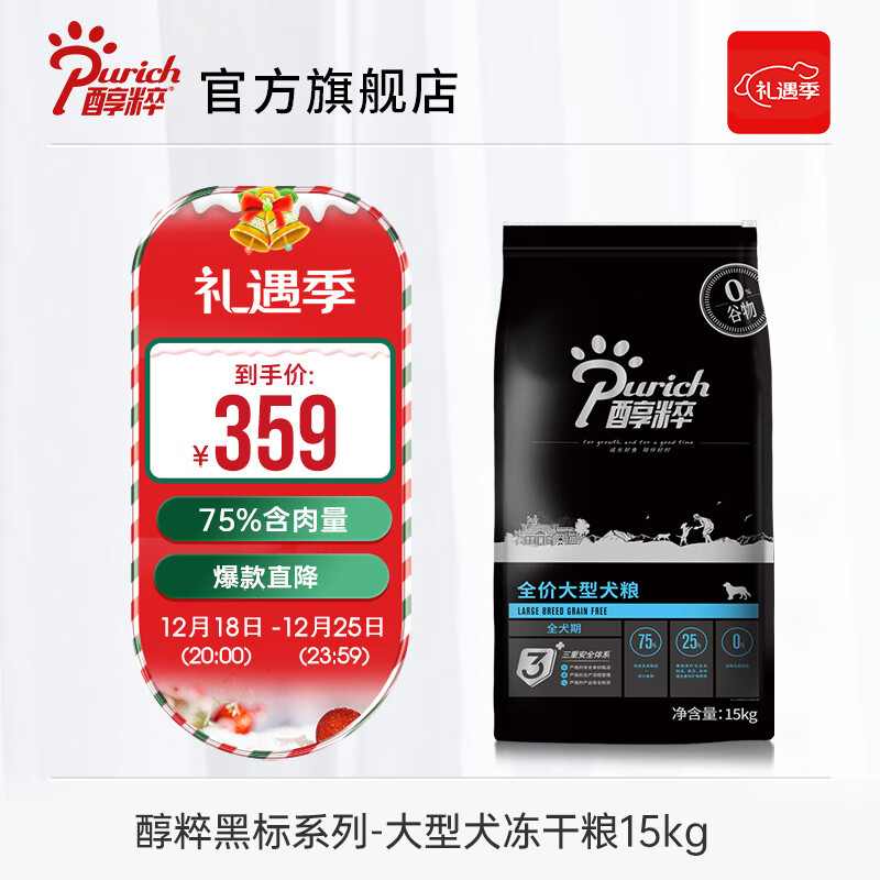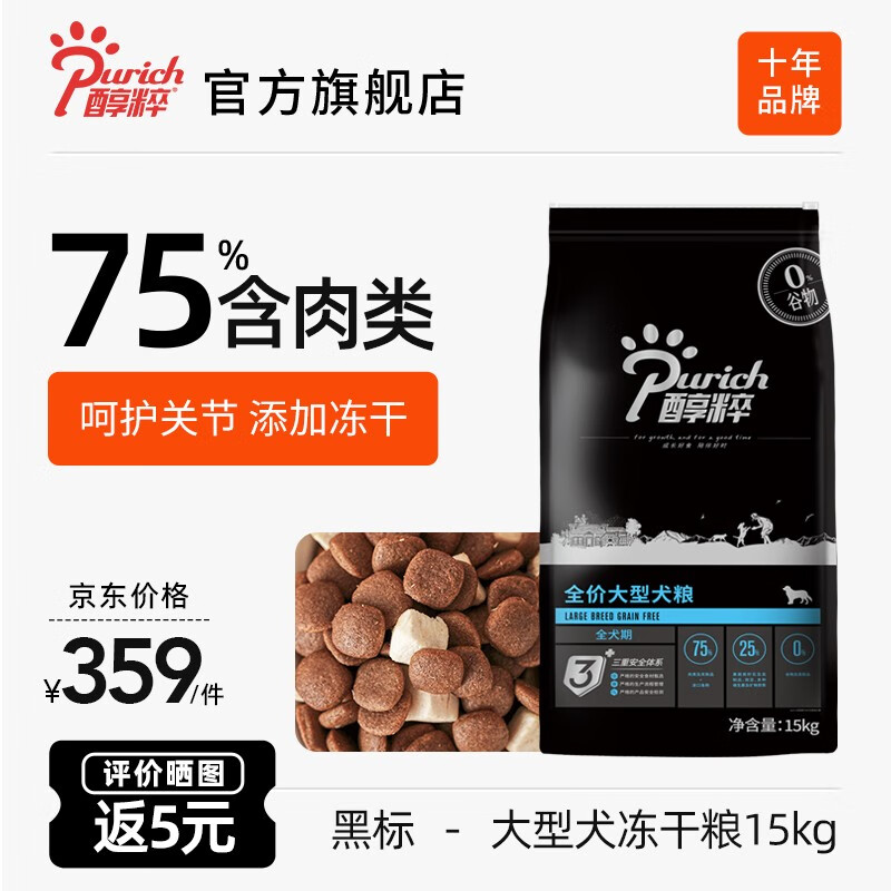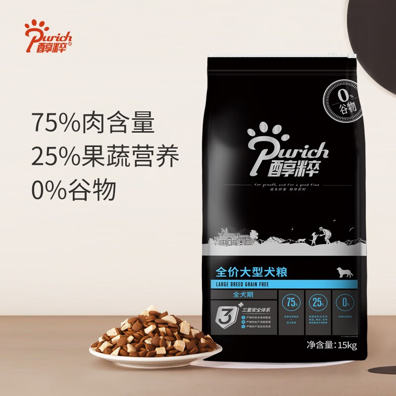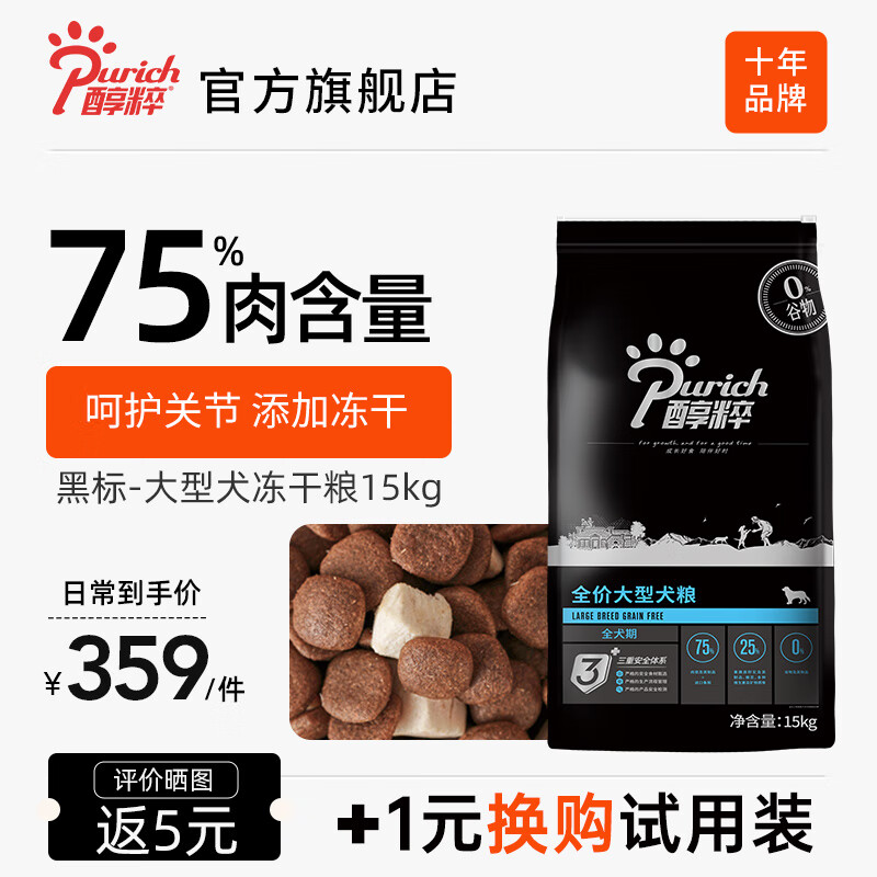 醇粹狗粮 黑标狗粮冻干大中小型全价犬粮成犬幼犬纯粹狗干粮 大型犬15kg【店长推荐】