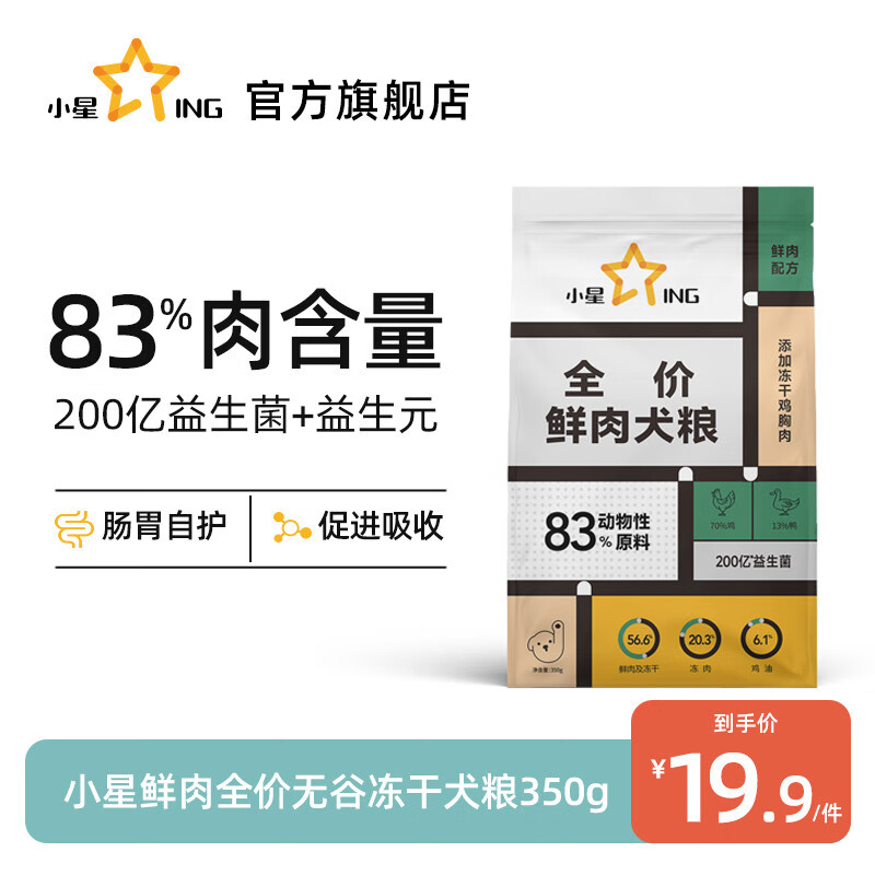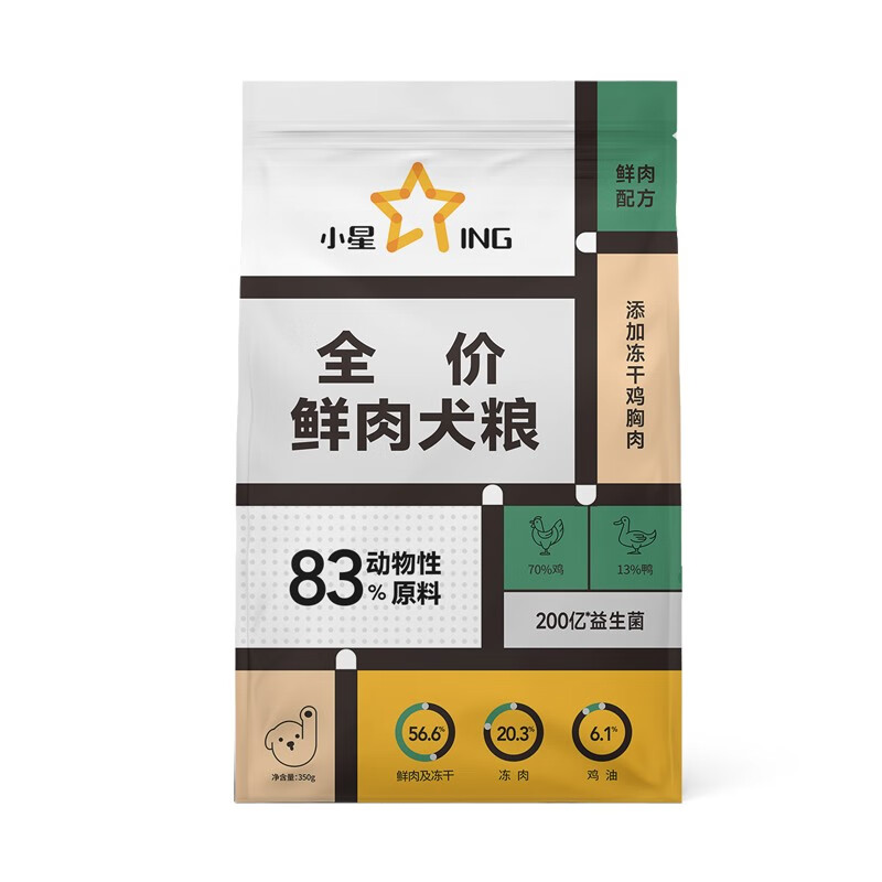 小星犬粮全价鲜肉狗粮高蛋白益生菌冻干犬粮成犬幼犬通用狗粮 鲜肉狗粮试吃装 350g 全犬期 全犬种