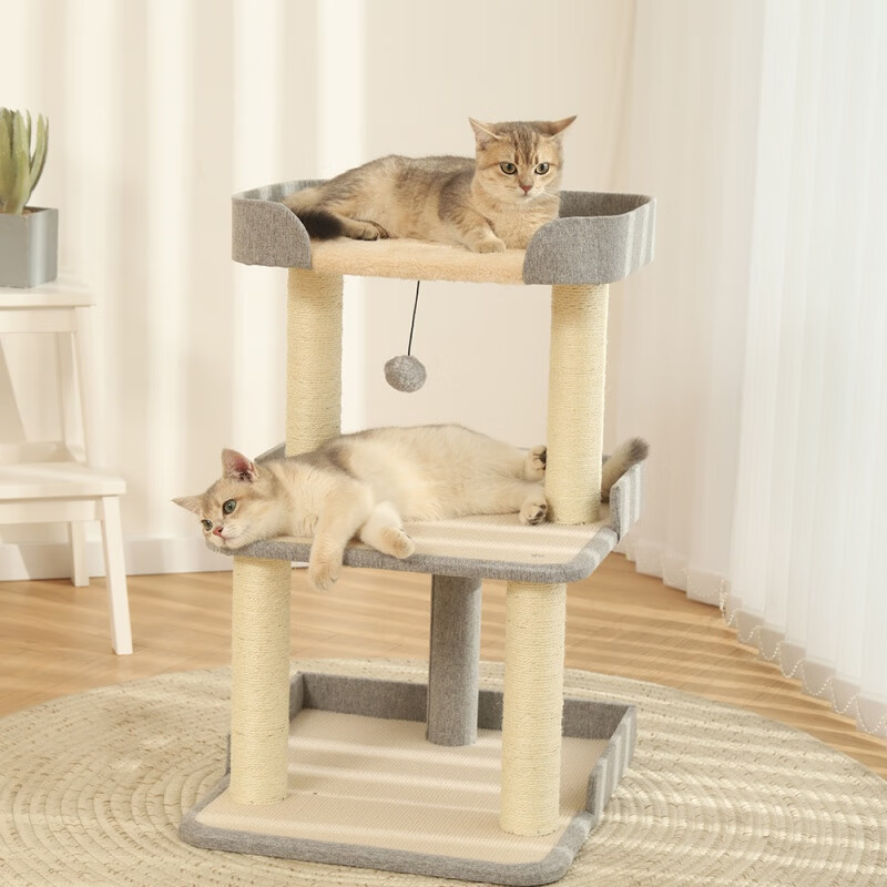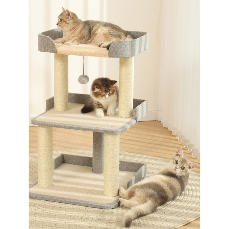 猫咪玩具双层猫爬架猫窝猫树一体小型猫架子剑麻猫抓板耐抓不掉屑 简约三层猫爬架
