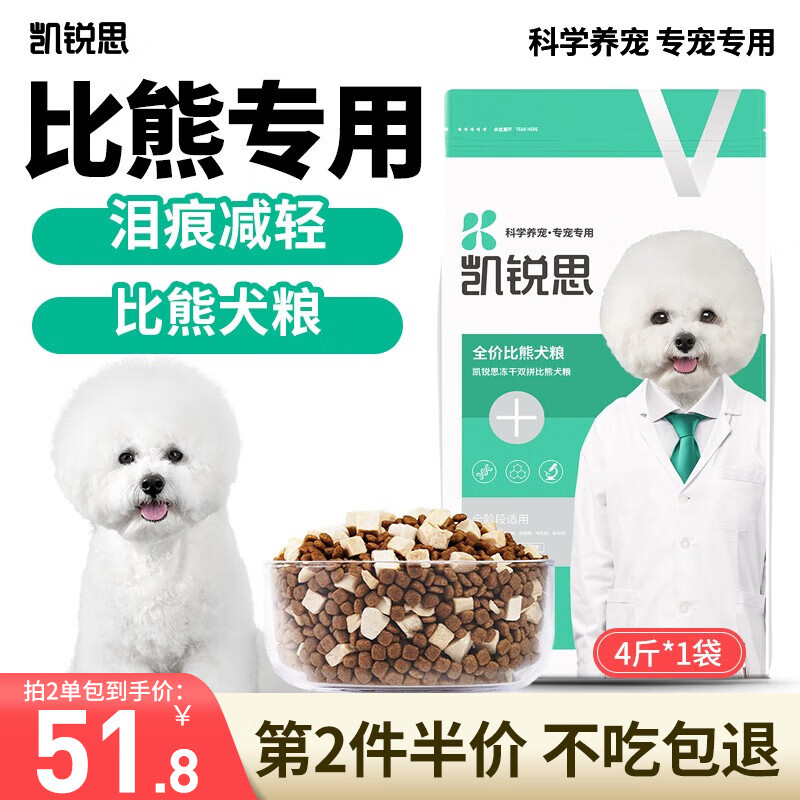 凯锐思比熊狗粮幼犬成犬专用白色美毛比熊犬专用粮奶糕 【冻干双拼4斤】第2件半介
