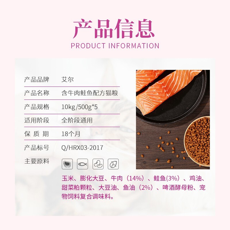 艾尔夹心酥猫粮 优蛋白易消化 益生元护肠道 维生素护肾脏助排毛球 营养健康 牛肉鲑鱼10kg