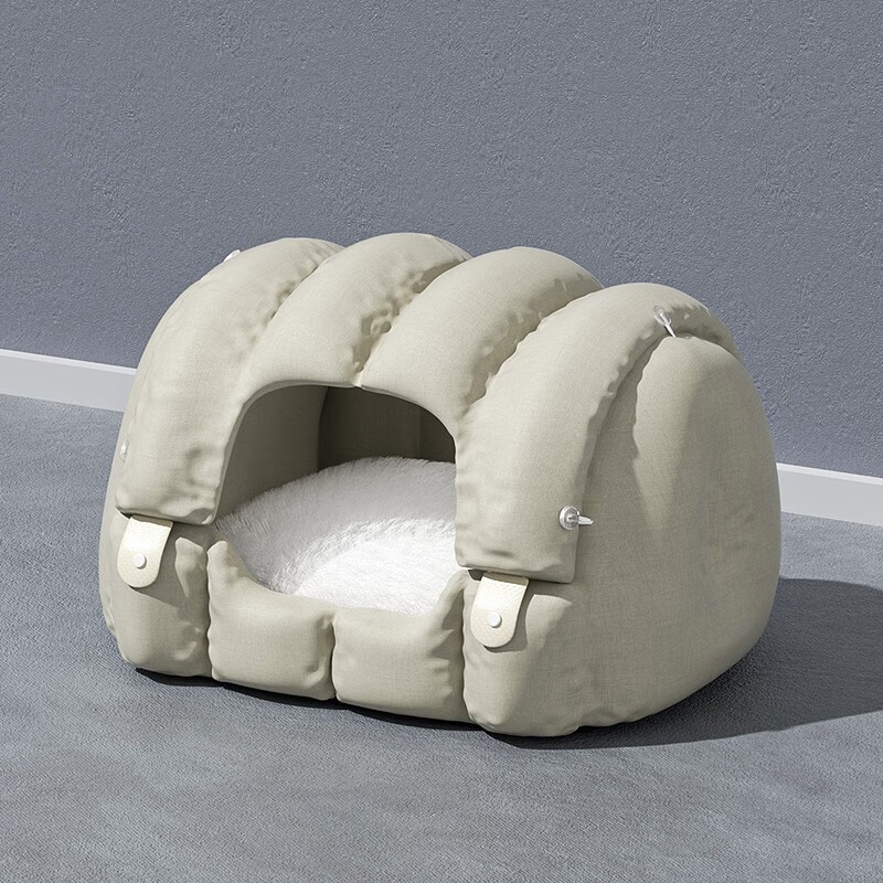 POPOCOLA 猫窝四季通用冬天保暖宠物猫咪房子沙发冬季全半封闭式狗狗窝 米色两用猫窝【保暖垫,20斤内适用】
