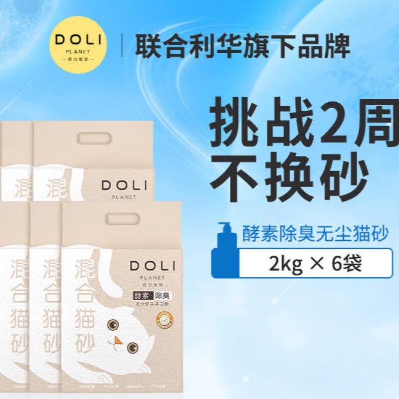 崇雾哆力星球联合利华旗下酵素除臭混合猫砂豆腐猫砂猫沙无尘2公斤6包