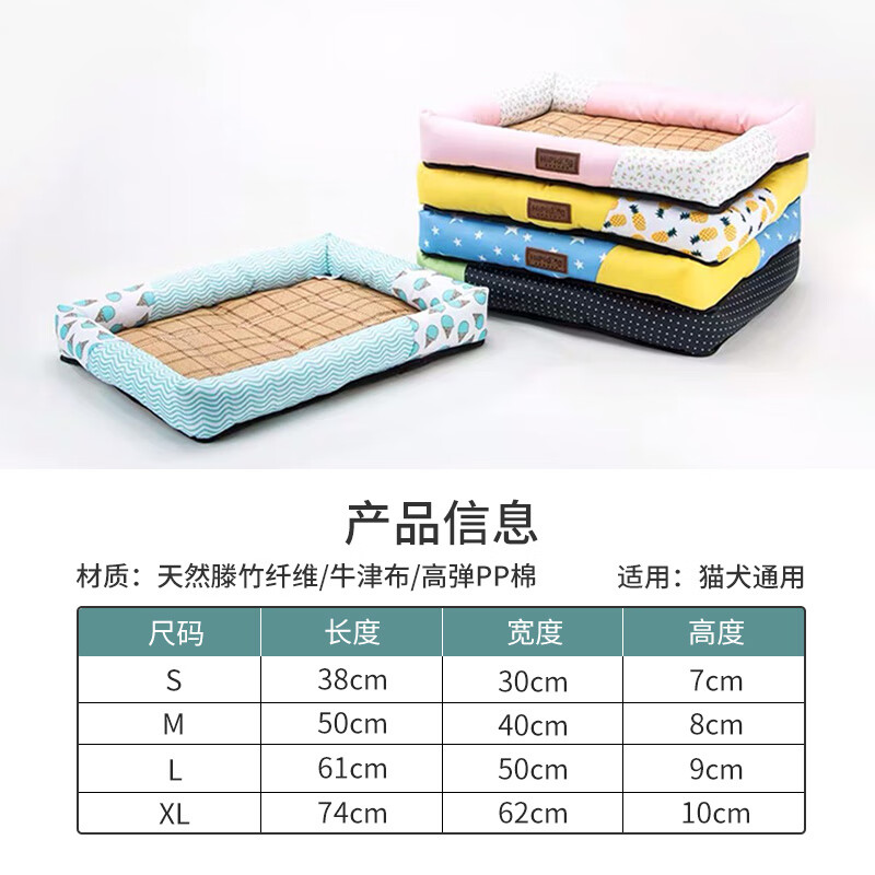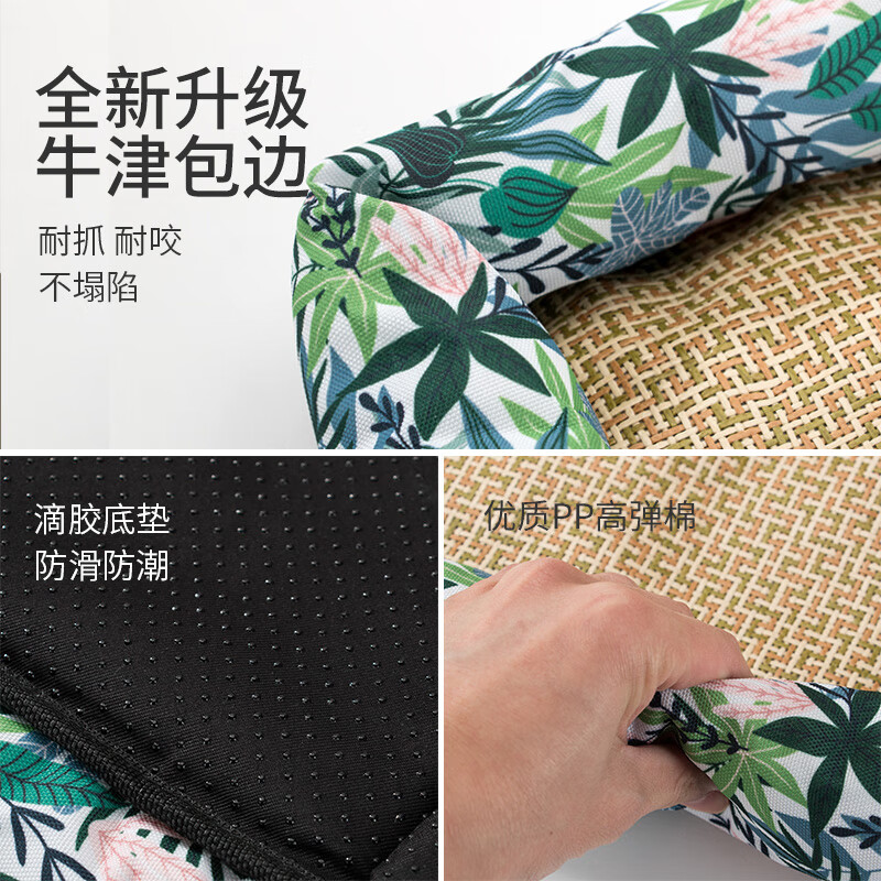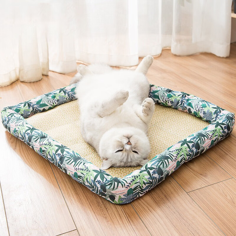 猫米猫窝夏天凉窝四季通用英短凉席窝蓝白垫子狗窝夏季可拆洗宠物用品 绿色格子【墙角经典款】 S码【建议体重5斤内】