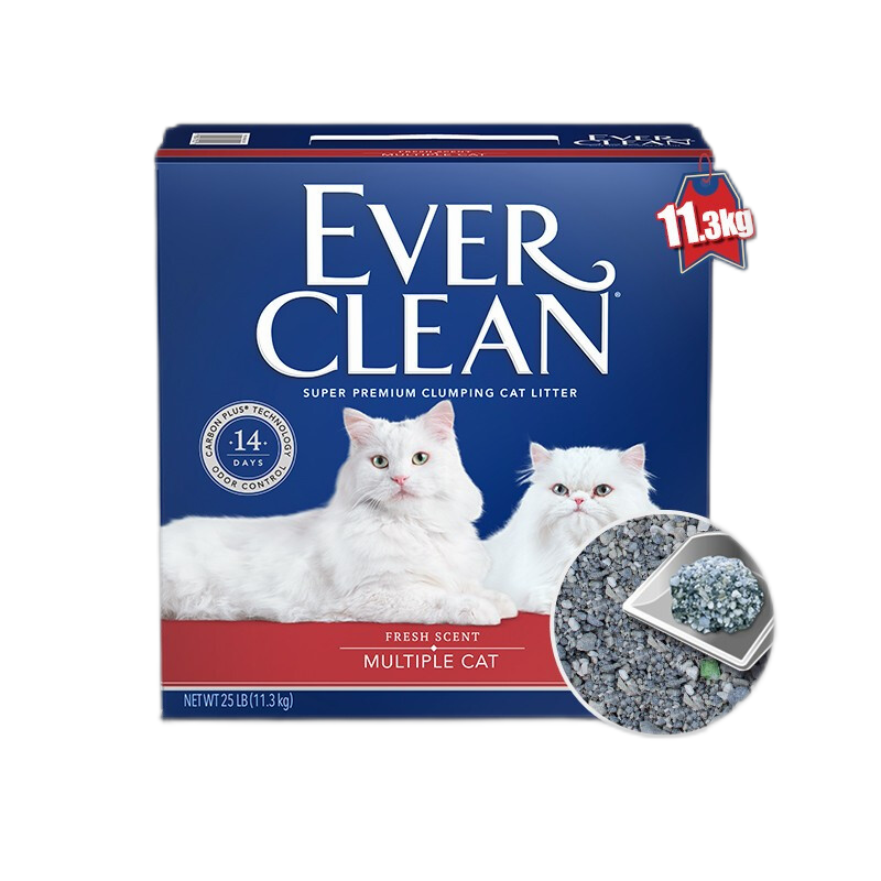 铂钻(EverClean)【超值专享】美国进口铂钻猫砂25磅*5箱 蓝标钻膨润土矿猫沙除臭 红标-25磅*5箱
