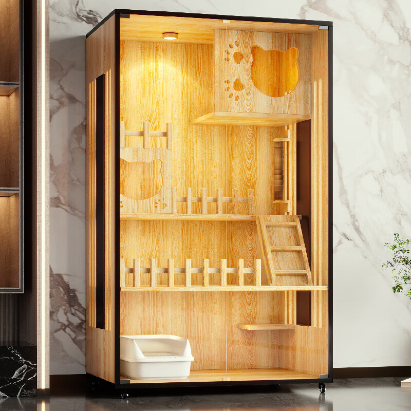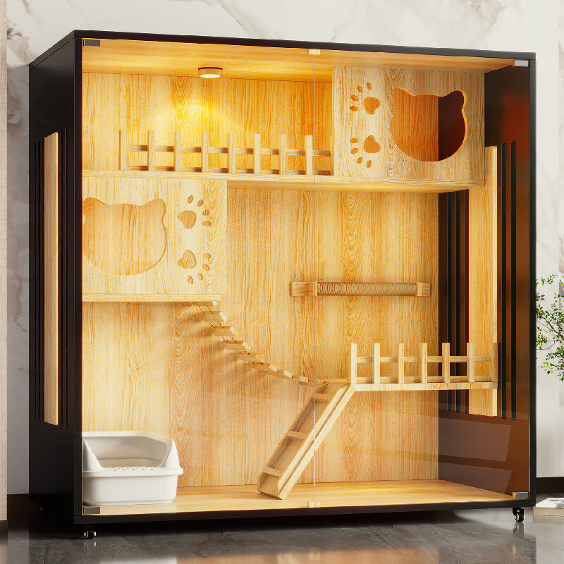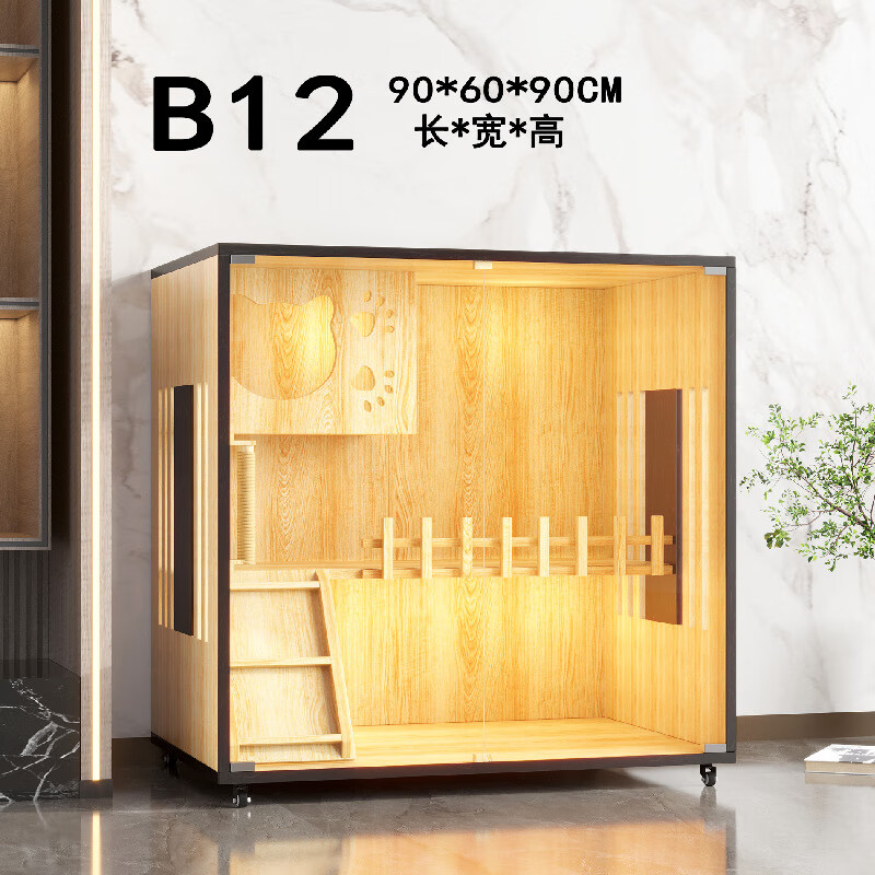 王多喵猫笼子超大号自由猫窝别墅隔离带厕所一体适合大猫柜舍屋宠物猫笼 加大猫砂盆【107_47_107】木 饮食款【猫窝 猫碗 饮食款】