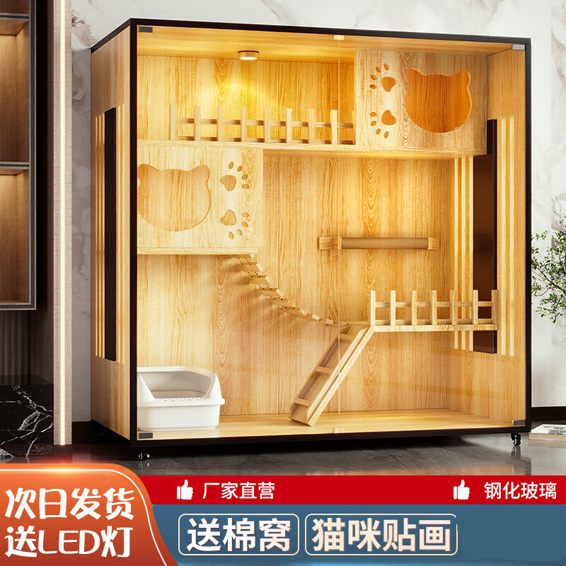 小米城堡 猫别墅猫笼子 猫柜猫屋猫舍双层宠物房超大自由空间猫咪窝家用 B1升级款60x60x120CM 师傅上门安装